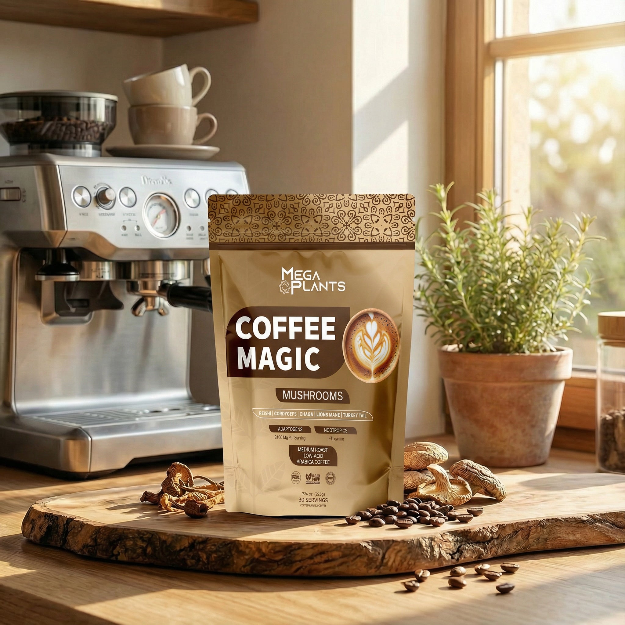 Crafted with five potent mushrooms and premium Arabica, this gold-standard blend delivers calm focus, natural energy, and adaptogenic support without the crash. Smooth, low-acid, sugar-free, and made with pure, plant-based ingredients — never just a sprinkle.