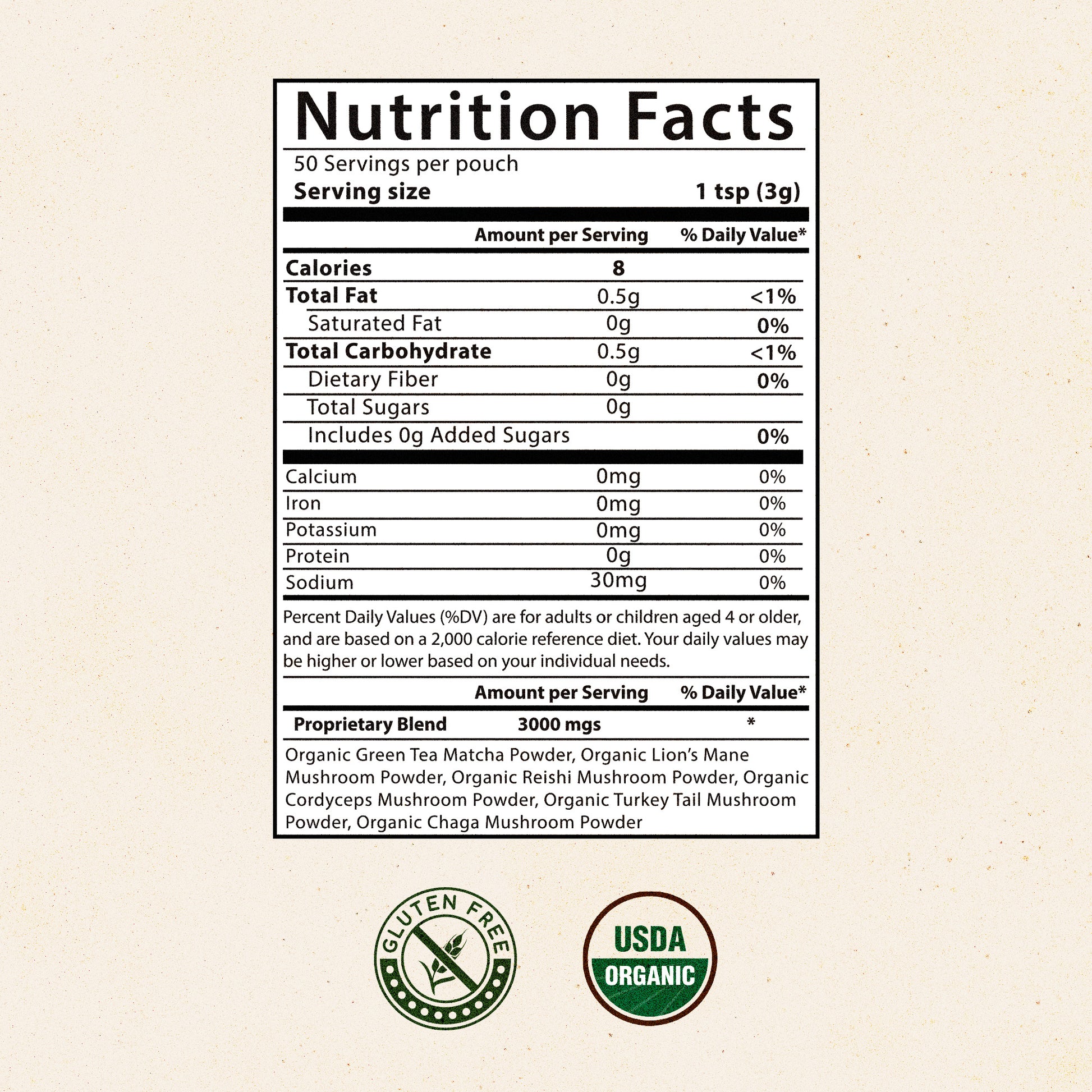 - 50 Servings per Pouch: Convenient & Easy to Use. Add one scoop of Matcha Magic to your milk, tea, or smoothie at any time of day! Enjoy a Rich Matcha drink with the added Nutritional Benefits of Powerful Functional Mushrooms. Add to your dessert bowls. Use as a 1:1 matcha powder replacement for Baked Treats!